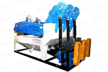 工作流程:洗砂機溢流的洗沙廢水與細沙回收機的清洗槽相連,而后通過渣漿泵將清洗相中的砂水混合物輸送至泥高壓分離器中,通過高速離心力和額定的入料壓力,旋流器將礦漿中的細沙分離,分J濃縮后濃度提升至60-70%的細砂經(jīng)沉砂嘴提供給脫水篩,在篩機振動的作用下,細砂與水有效分離。